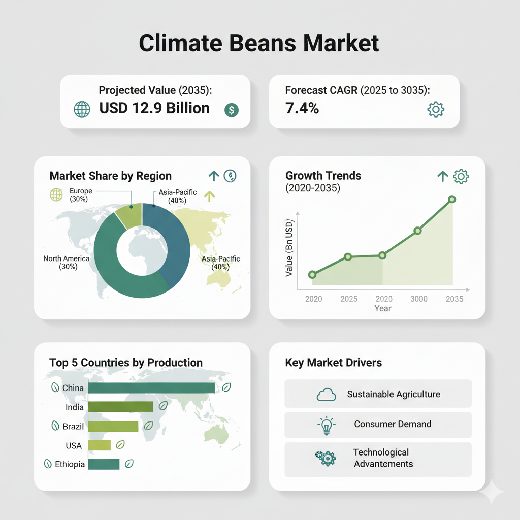 ROCKVILLE, MD, UNITED STATES, October 14, 2025 /EINPresswire.com/ -- The global climate beans market is poised for robust expansion in the coming decade. The market is projected to reach USD 12.9 billion by 2035, rising from an estimated USD 6.3 billion in 2025. During the forecast period of 2025 to 2035, the industry is expected to grow at a compound annual growth rate (CAGR) of 7.4 %.