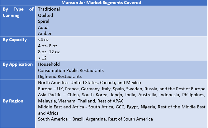 Manson Jar Market: https://www.maximizemarketresearch.com/market-report/global-mason-jars-market/84309/\