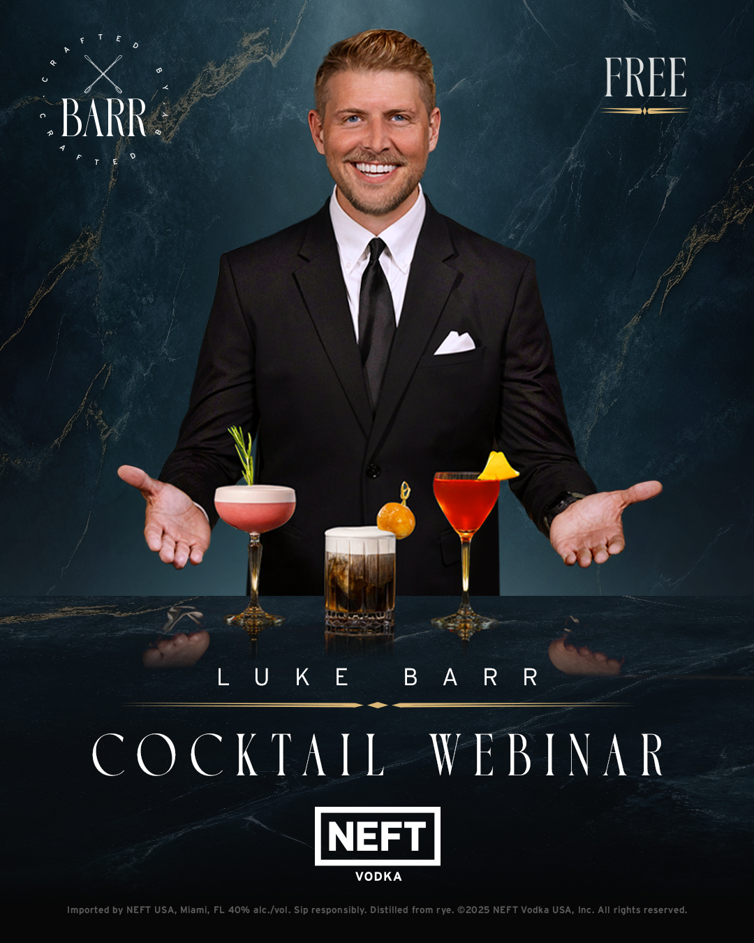 LOS ANGELES, CA, UNITED STATES, October 29, 2025 /EINPresswire.com/ -- From Friendsgiving feasts to Thanksgiving dinners, cozy date nights, office holiday parties, and New Year’s Eve celebrations, one thing every gathering needs is a great cocktail. This season, premium Austrian brand NEFT Vodka invites cocktail enthusiasts ages 21 and older to join Crafted by Barr, a free 30-minute virtual cocktail masterclass hosted by NEFT Vodka’s Global Master Mixologist, Luke Barr.