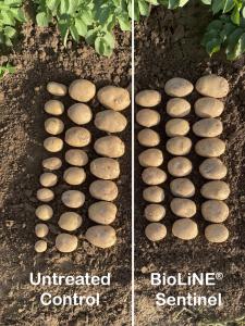 Image Showing Better Size Uniformity and Larger Potatoes comparing Control versus Bioline Sentinel Treated
